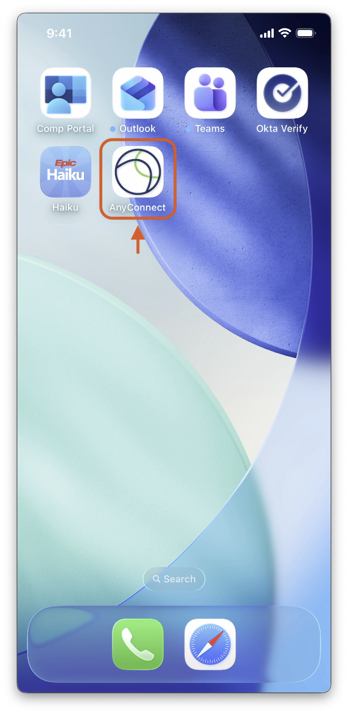1. Open the AnyConnect app