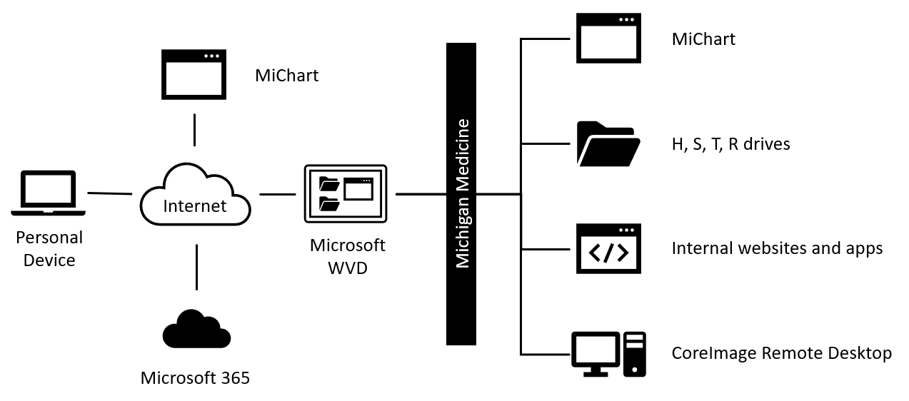 Michigan Medicine offers the Windows Virtual Desktop (WVD) solution for remote workers using a personal device.