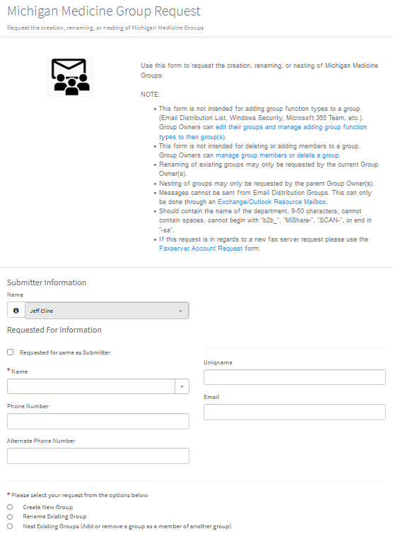 - Note: Group owners are not automatically set as members of the created group. If the group owner(s) also needs to be a member of the group, they must add themselves as a member of the corresponding Michigan Medicine group. Reference the Editing Groups section of this article.