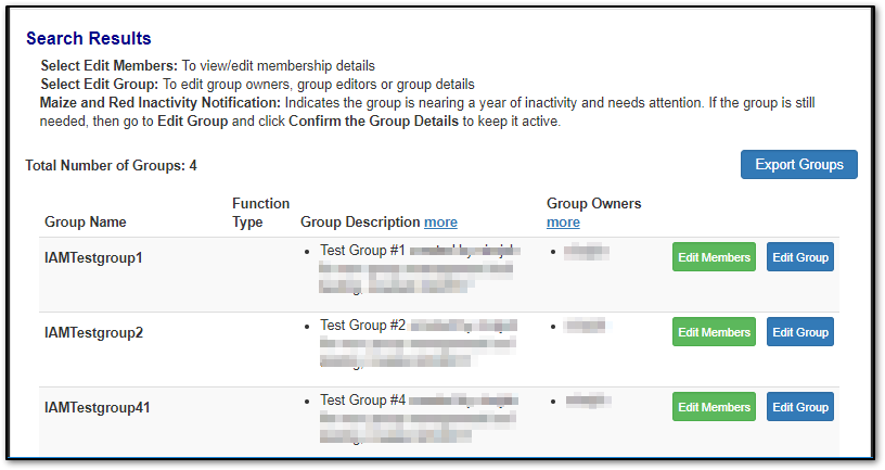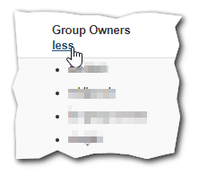 The hyperlink more gives will provide more detail in the Group Description or Group Owners column. For example, clicking on more next to Group Owners will expand to show the complete list of owners. Click less to collapse the list.