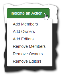 There are six actions: Add Members, Add Owners, Add Editors, Remove Members, Remove Owners, and Remove Editors.