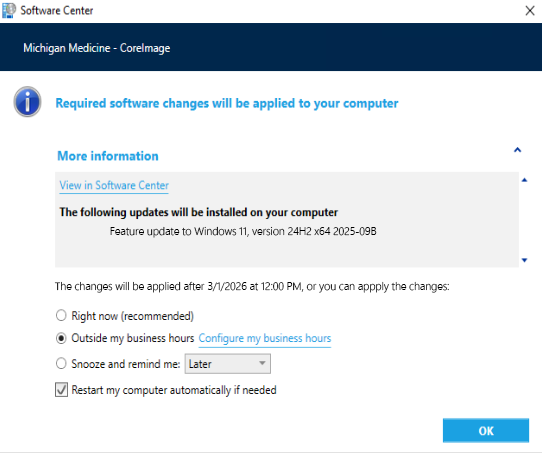 - There is an option to check the box for Restart my computer automatically if needed