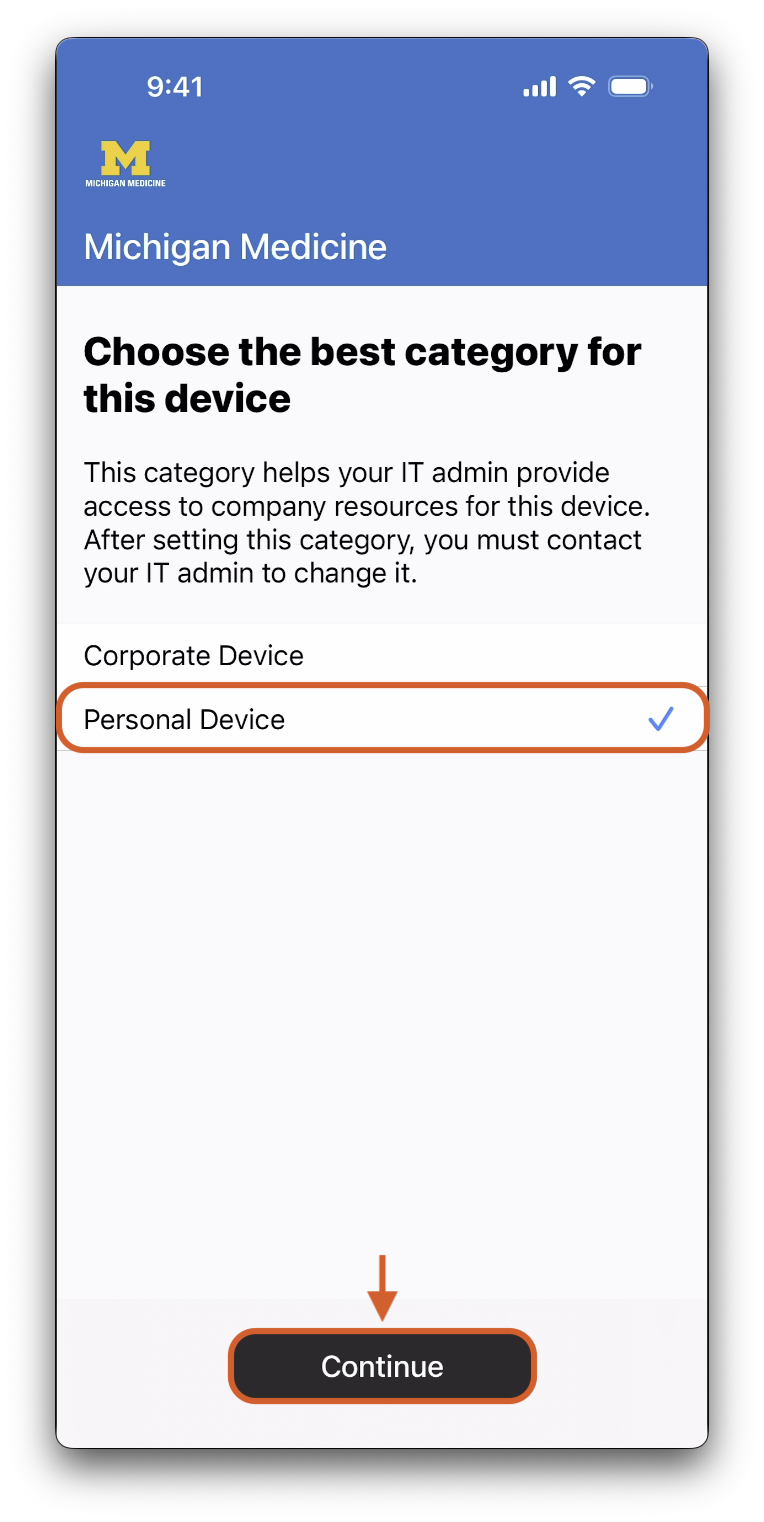 22. Select Personal Device for the device category, then tap Continue