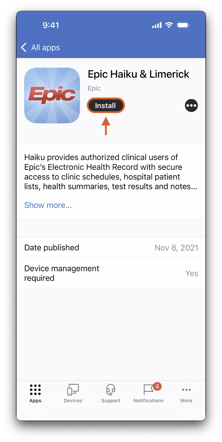 This document will walk you through installing Epic Haiku on your Intune enrolled iOS device.