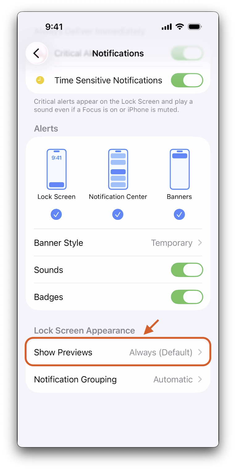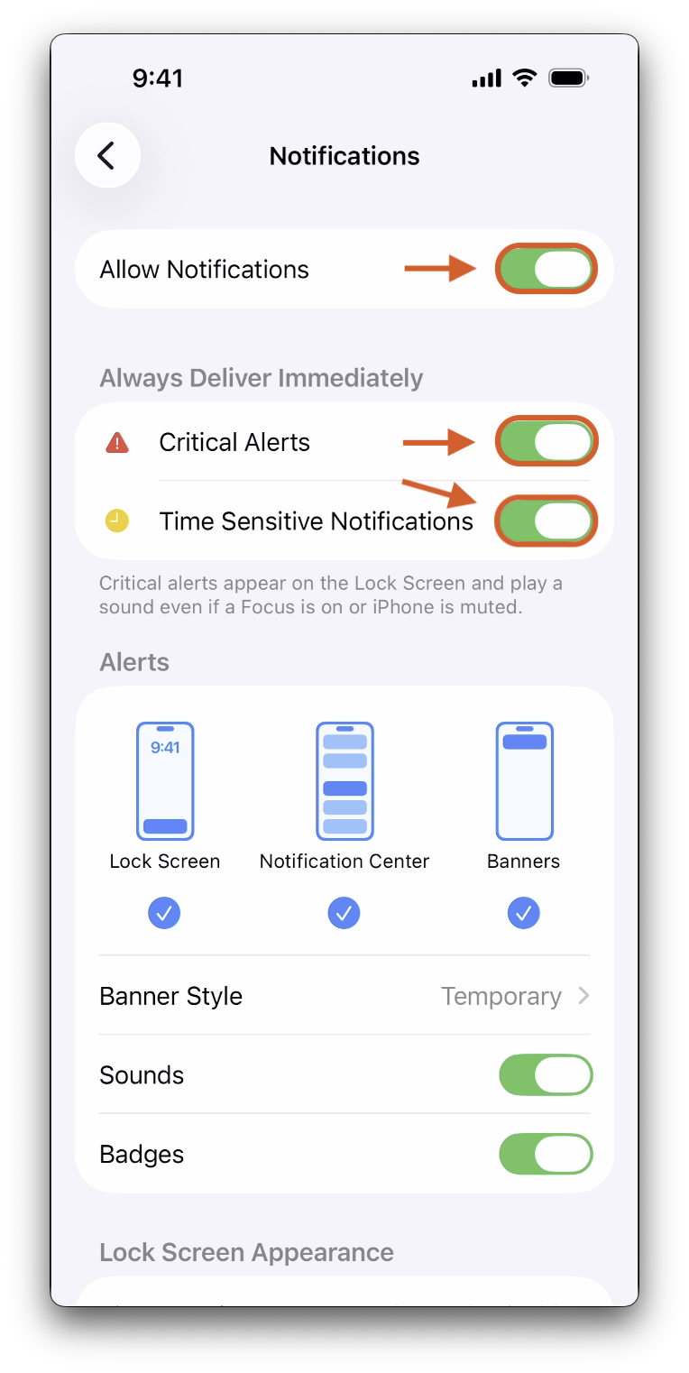 5. Ensure Allow Notifications, Critical Alerts, and Time Sensitive Notifications are toggled On