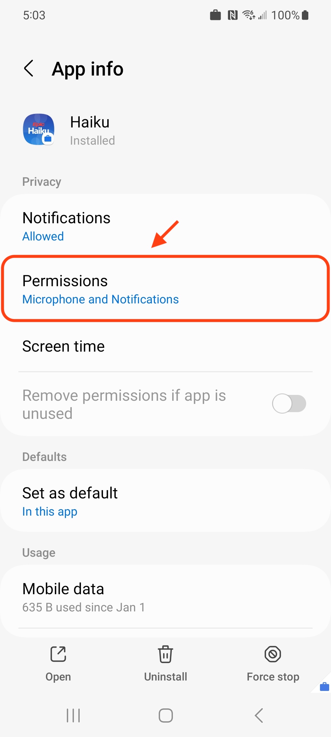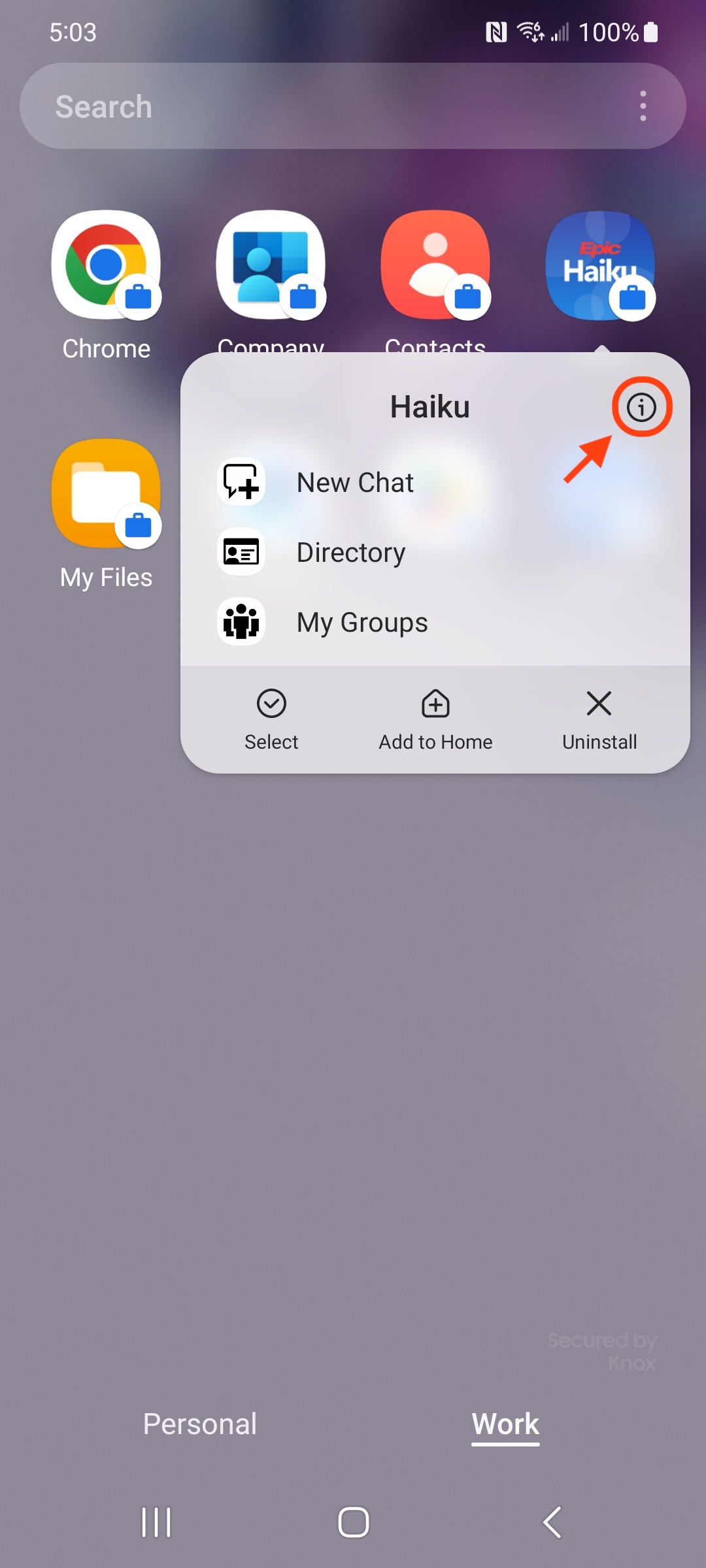 1. Press and hold the Haiku application until the options menu appears, then tap the information icon in the top right corner of that menu