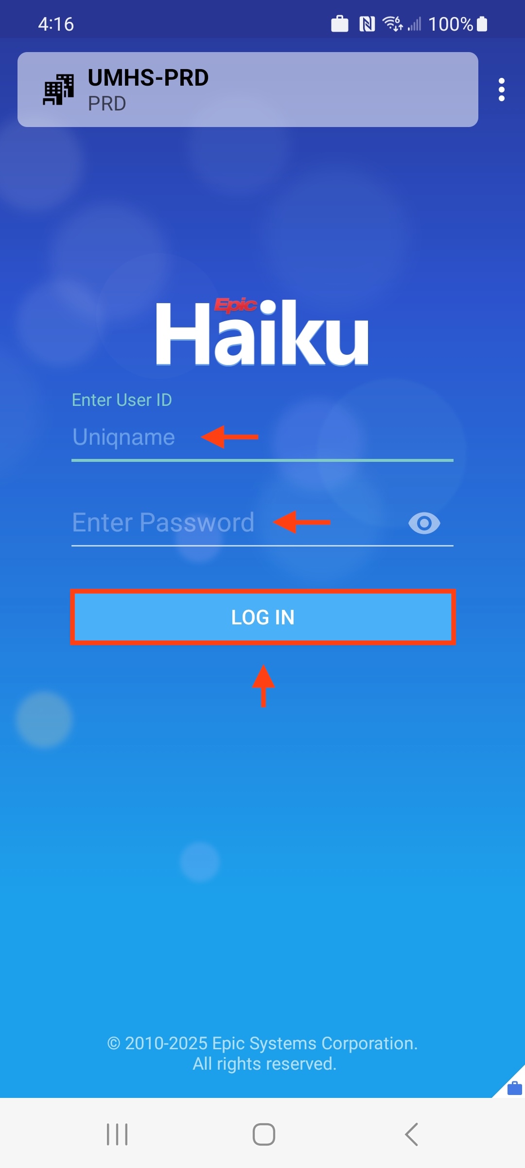 6. Enter your Uniqname and Password, then tap Log In