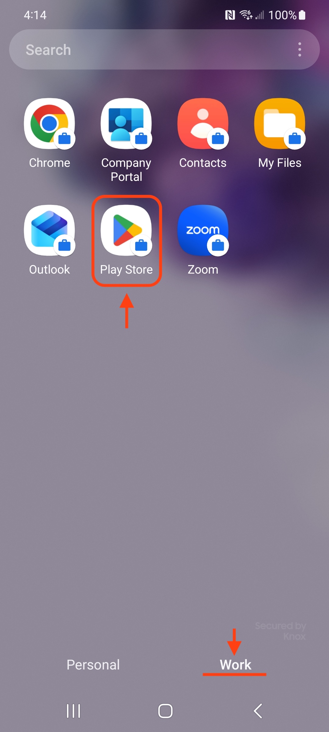 1. From the Work tab, open the Play Store