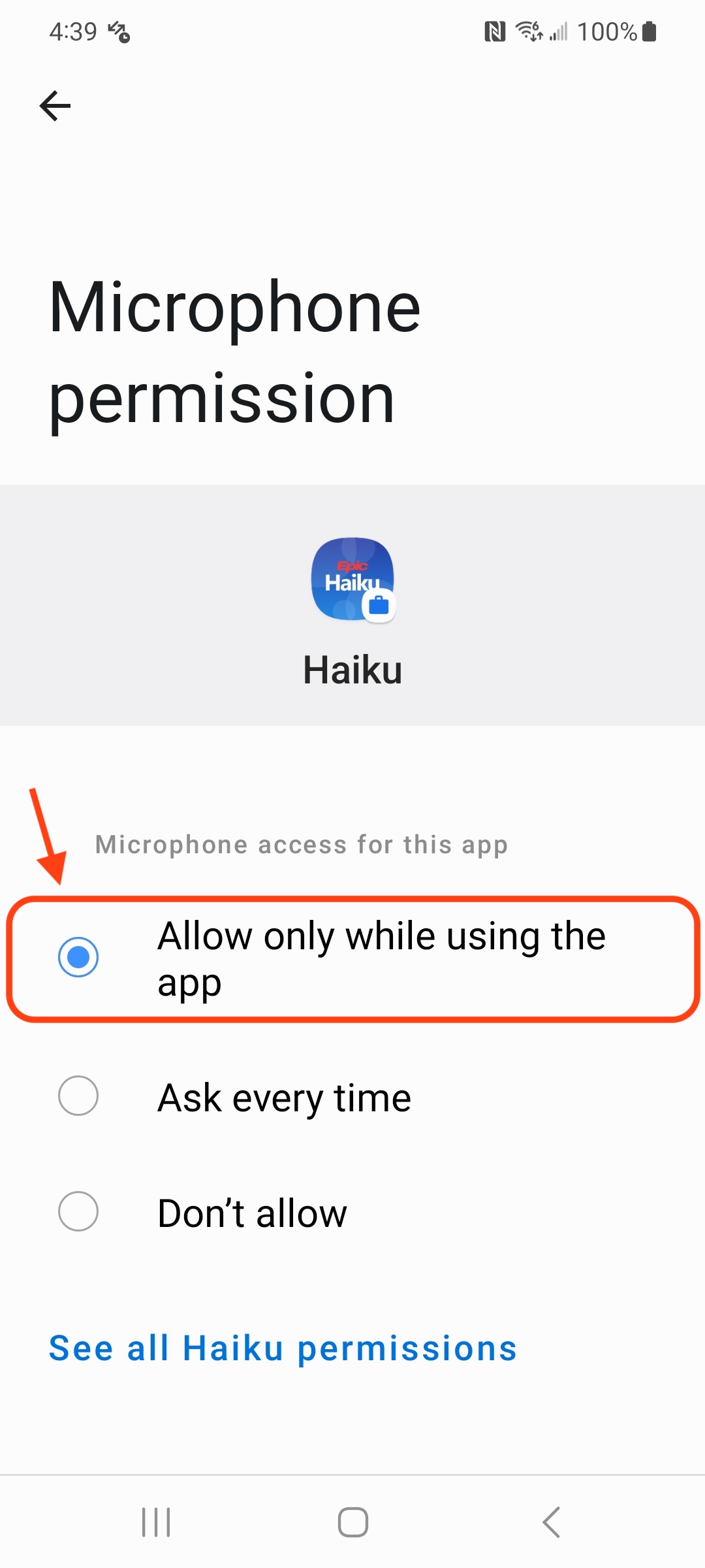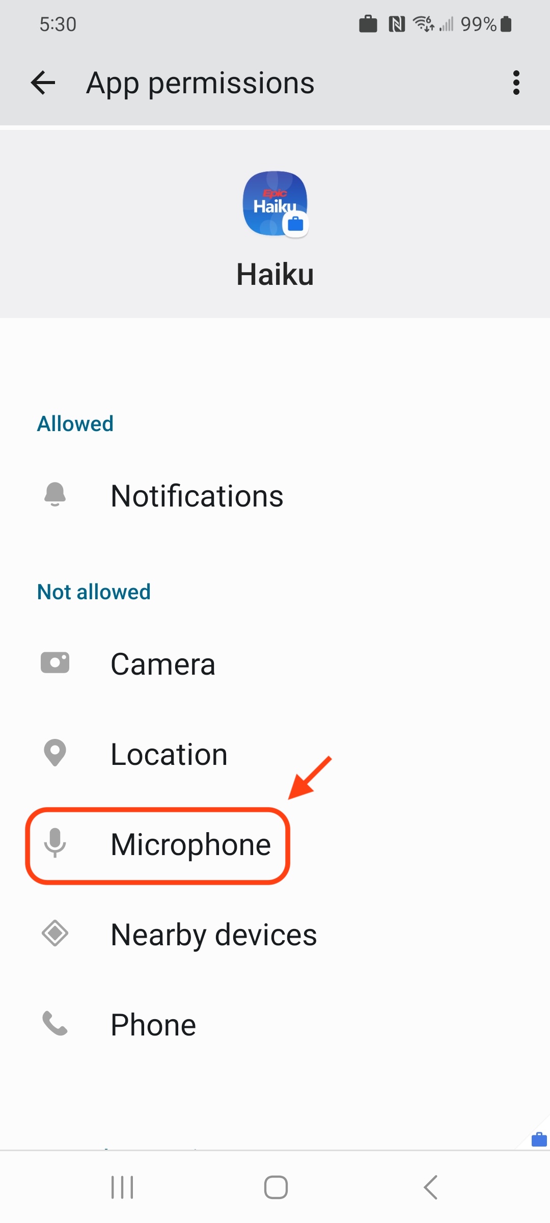 5. From the previous screen, tap Microphone