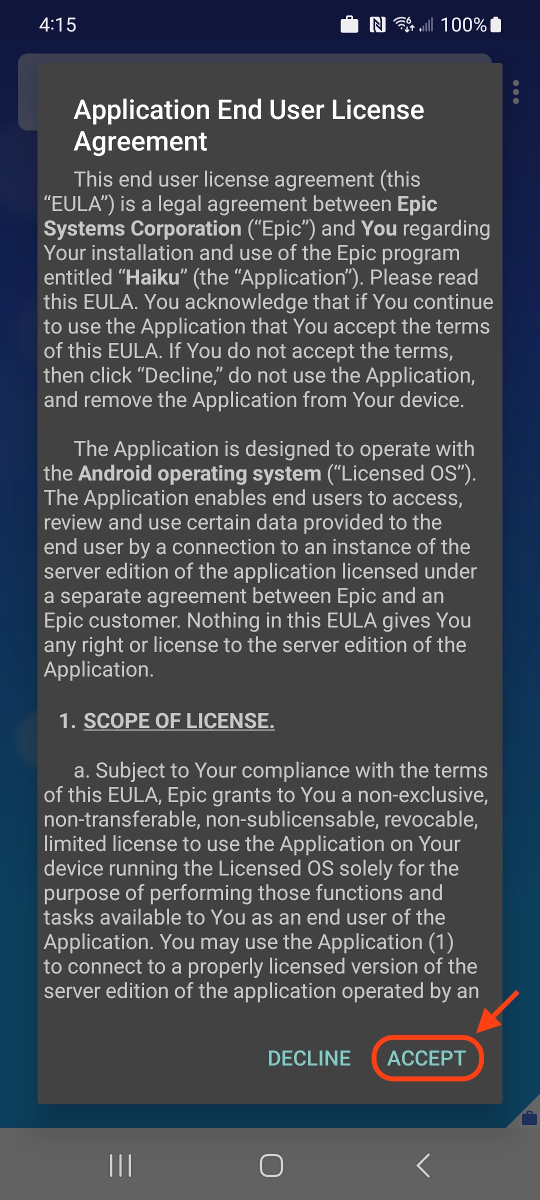 5. Tap Accept