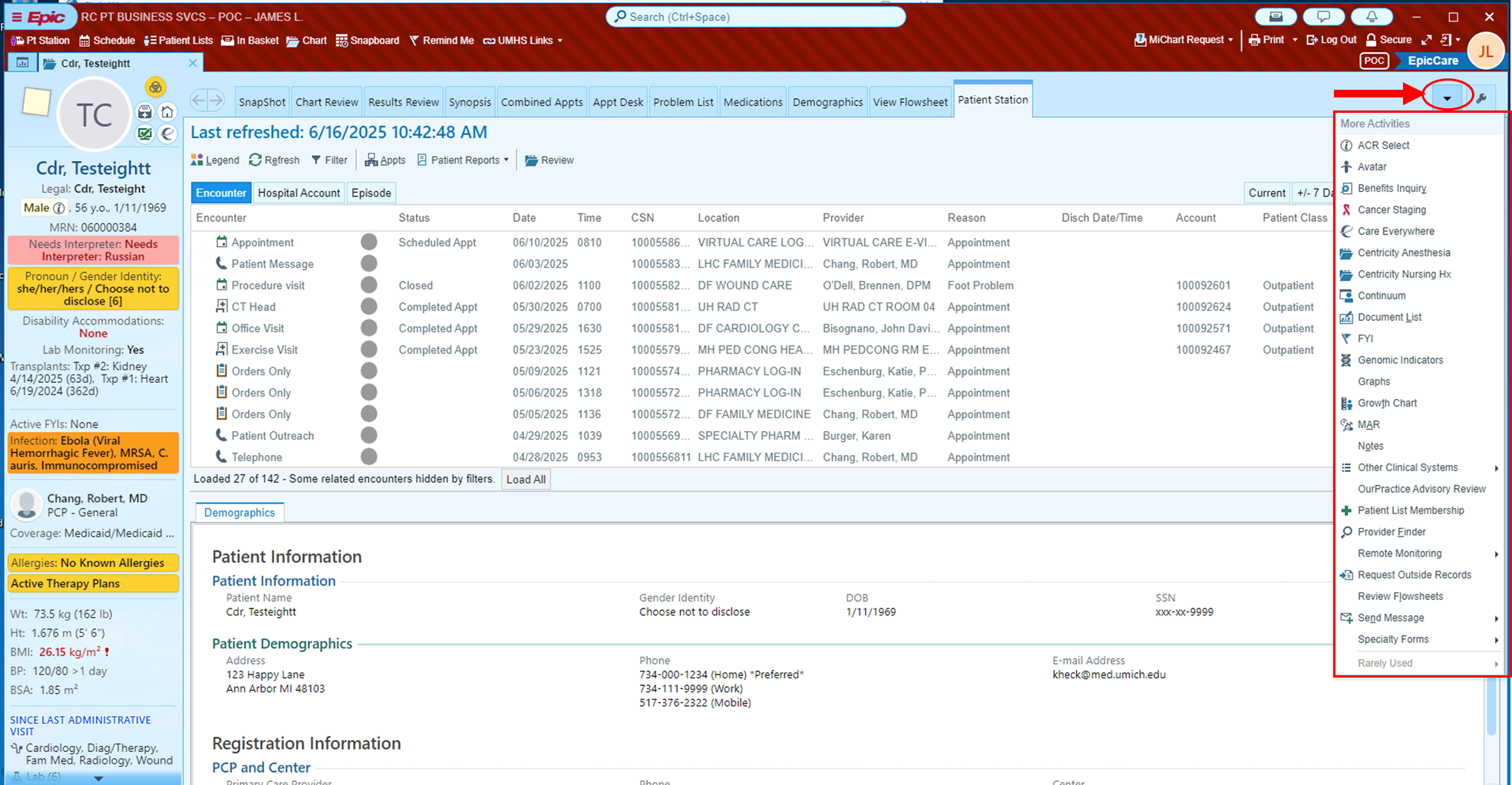 - Access the "More" Menu: Within an active patient encounter in MiChart, locate the "More" menu activity. This is typically found in the top navigation bar.