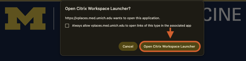 If the device is within the Michigan Medicine network, you can open your hosted applications directly from the Citrix Workspace application in the start menu.
