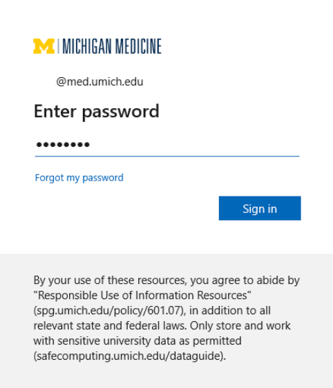 - Enter your Michigan Medicine email and password. Click Sign In.