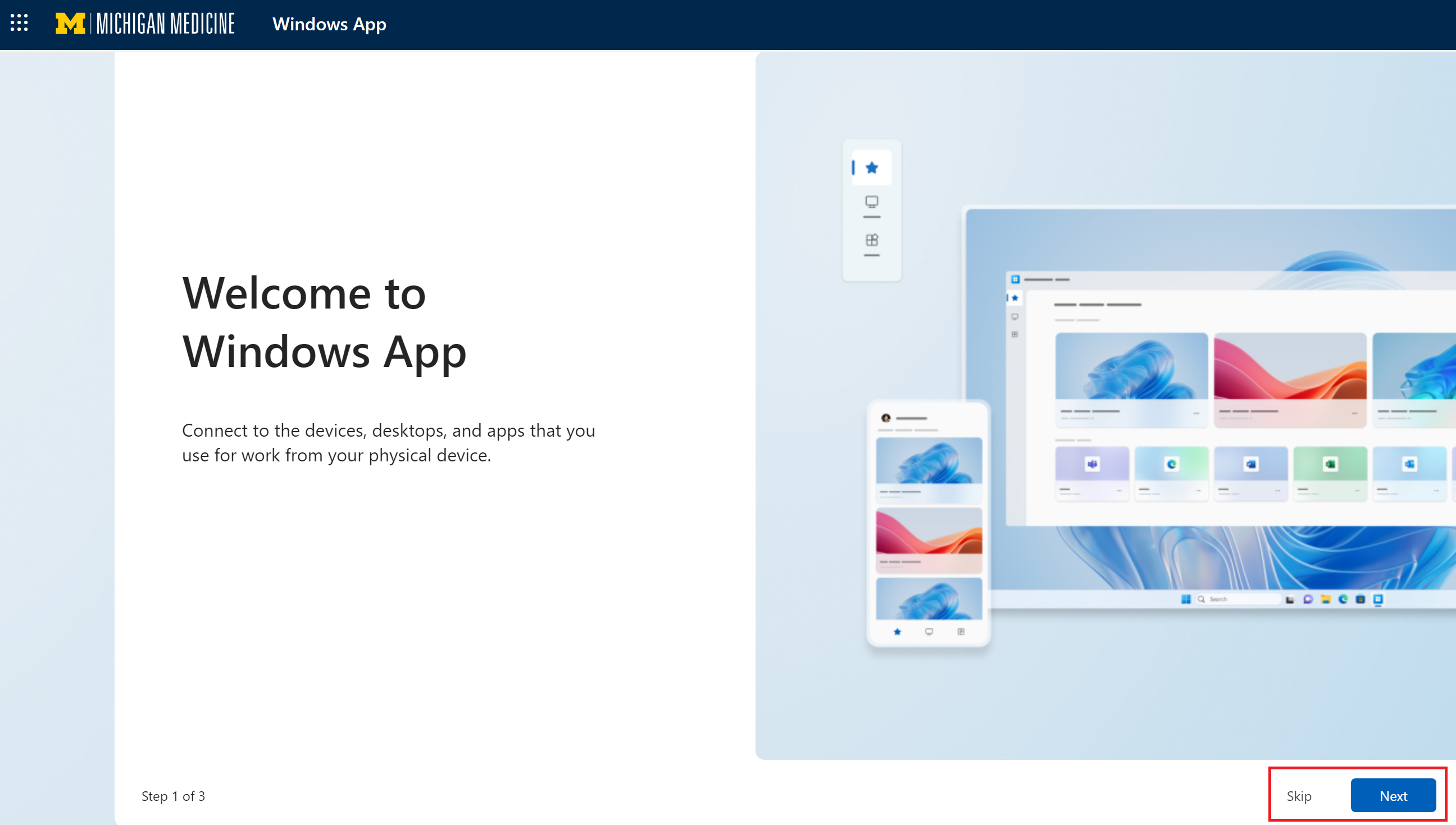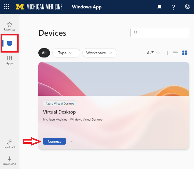 - To access the WVD portal, click the following address: https://virtual.med.umich.edu.