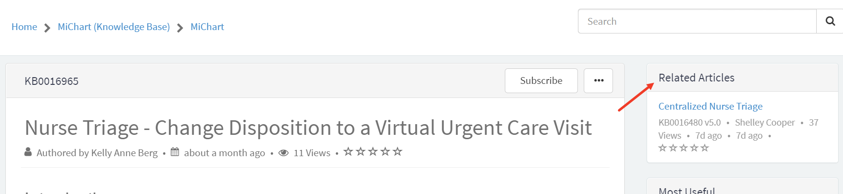- Some articles will contain a Related Articles widget to the right of the article. This provides for quick access to related content.
