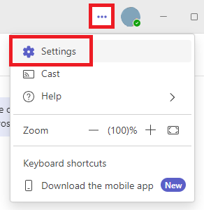 - Click the three dots (...) next to your profile icon in the title/search bar at the top of the window.