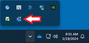 - If it is installed, make sure that the Teams client application is running before opening Outlook. The Teams icon should be displayed in the System Tray. If it is not running, start the application using its shortcut in the start menu.