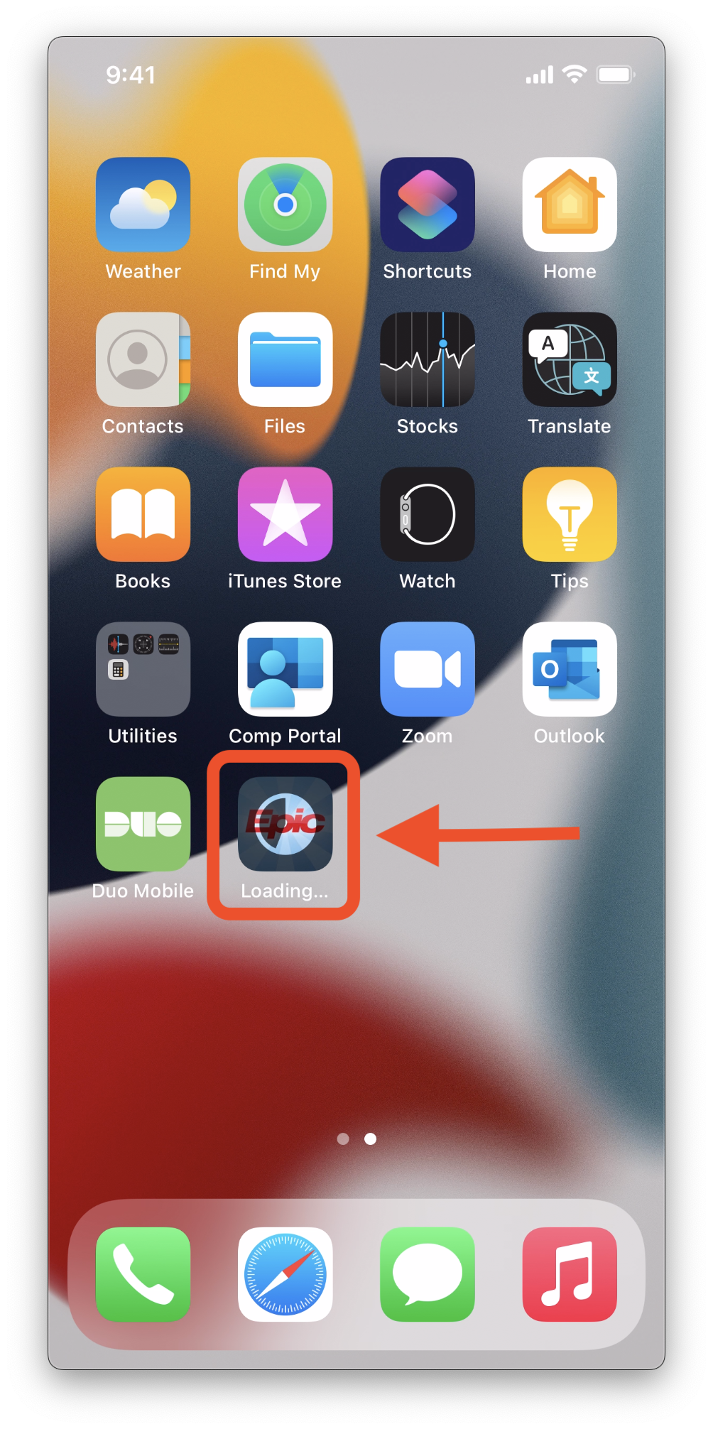 Note: to view progress of the install, Swipe Up to return to the Home Screen. The app's icon will display the install progress.