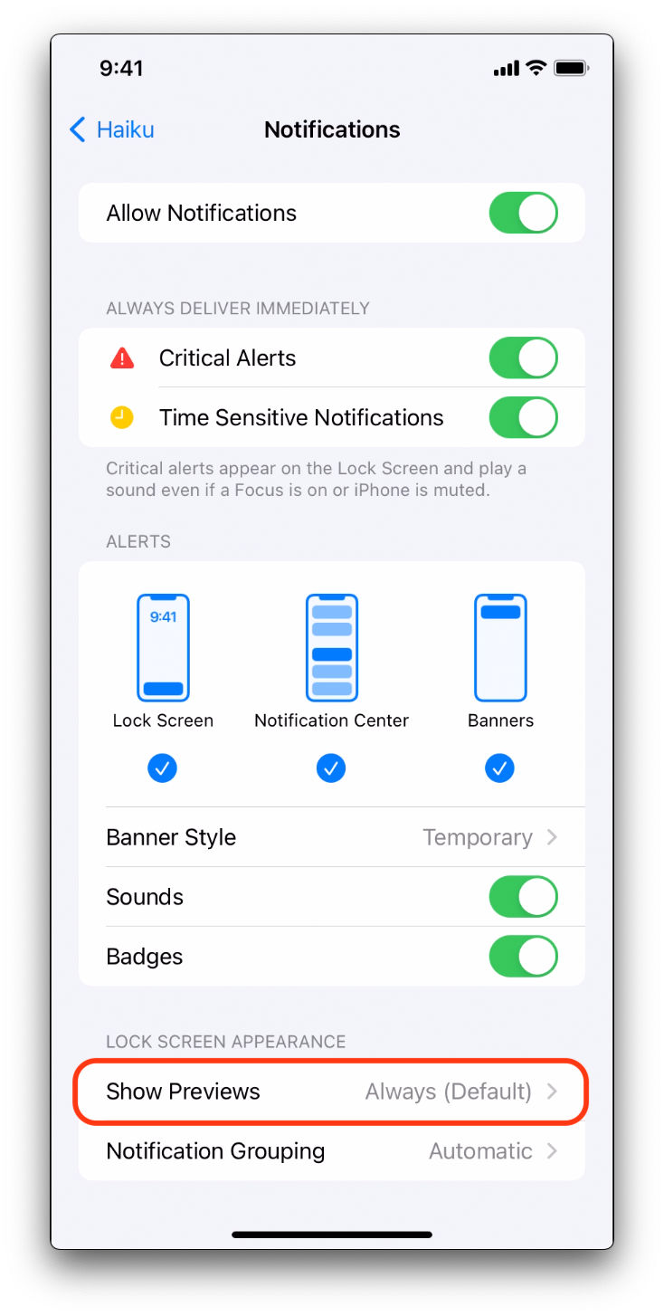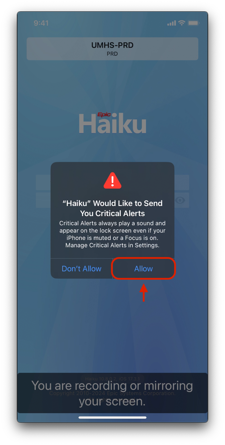 4. Tap Allow for Haiku to send critical alerts