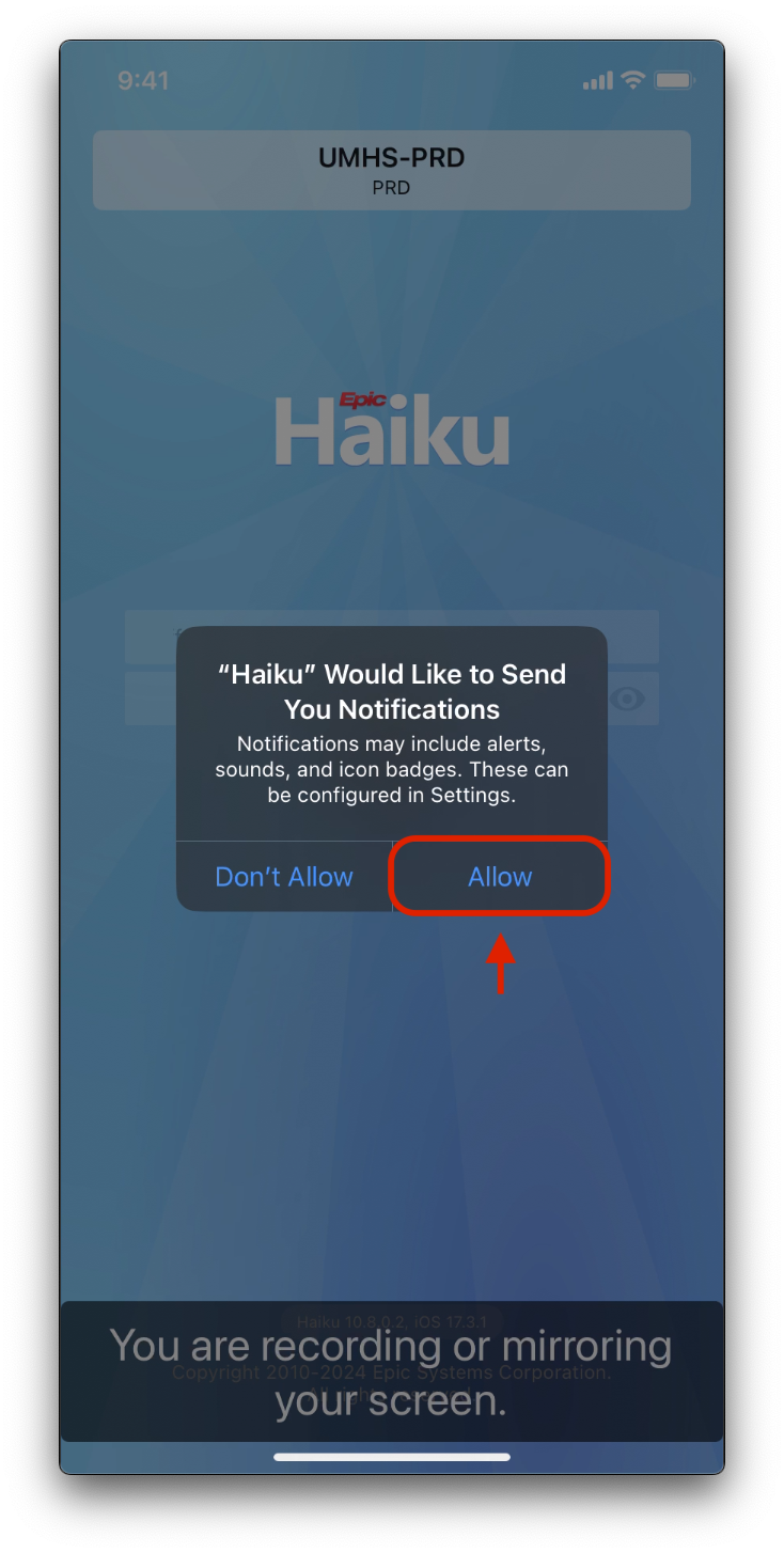 3. Tap Allow for Haiku to send notifications