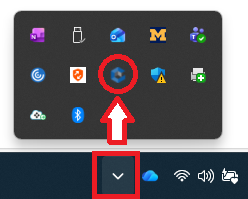 Source Device Target Device -- Classic-CoreImage Intune-CoreImage Classic-CoreImage Intune-CoreImage WVD Personal Device - If you need elevated permissions (i.e., admin rights or privileged access), you can request them through the Just-In-Time (JIT) process. You can only request JIT-based elevated permissions once the device completes the installation of the CyberArk Endpoint Privilege Manager (EPM) agent. The EPM agent must be running and the device connected to the internet for the JIT process to recognize that device and for you to request elevated permissions / privileged access for that device. If you receive an error when attempting to request "privileged access" via your user profile page for your new Intune-CoreImage device, please check to see whether the CyberArk EPM agent is installed, running, and the device is connected to the internet. You can validate that the EPM agent is installed by checking the system tray. To do so, click on the ^ arrow and validate that the EPM agent's icon is visible as shown in the following screenshot.