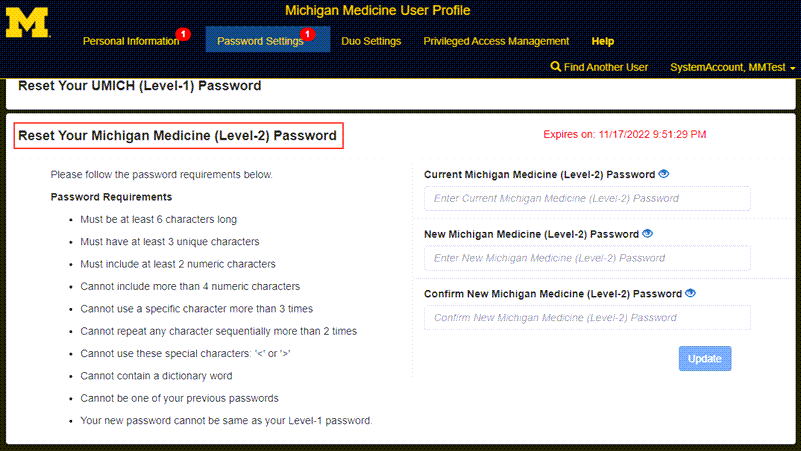 Click on Reset Your Michigan Medicine (Level-2) Password.