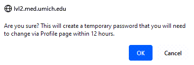 NOTE: Take note of the Temp Password. You will need this to create new password via User Profile Page. Once you click Close you will not be able to retrieve the temporary password and you will need to click Issue Temporary Password to generate a new temporary password.