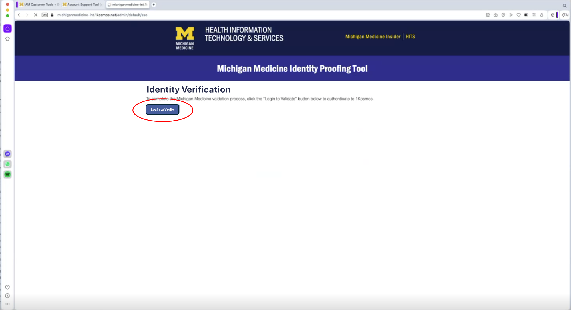 In the Michigan Medicine Identity Proofing Tool Identity Verification page, click on Login to Verify.