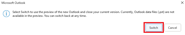 - When opening New Outlook for the first time, you may be presented with the following window.