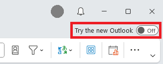 - Toggle the Try the new Outlook switch located in the top-right corner of the Outlook client.