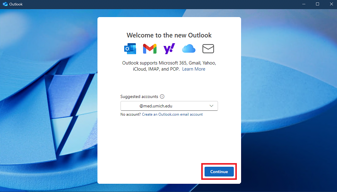 - Validate that your Michigan Medicine email address appears and click Continue.