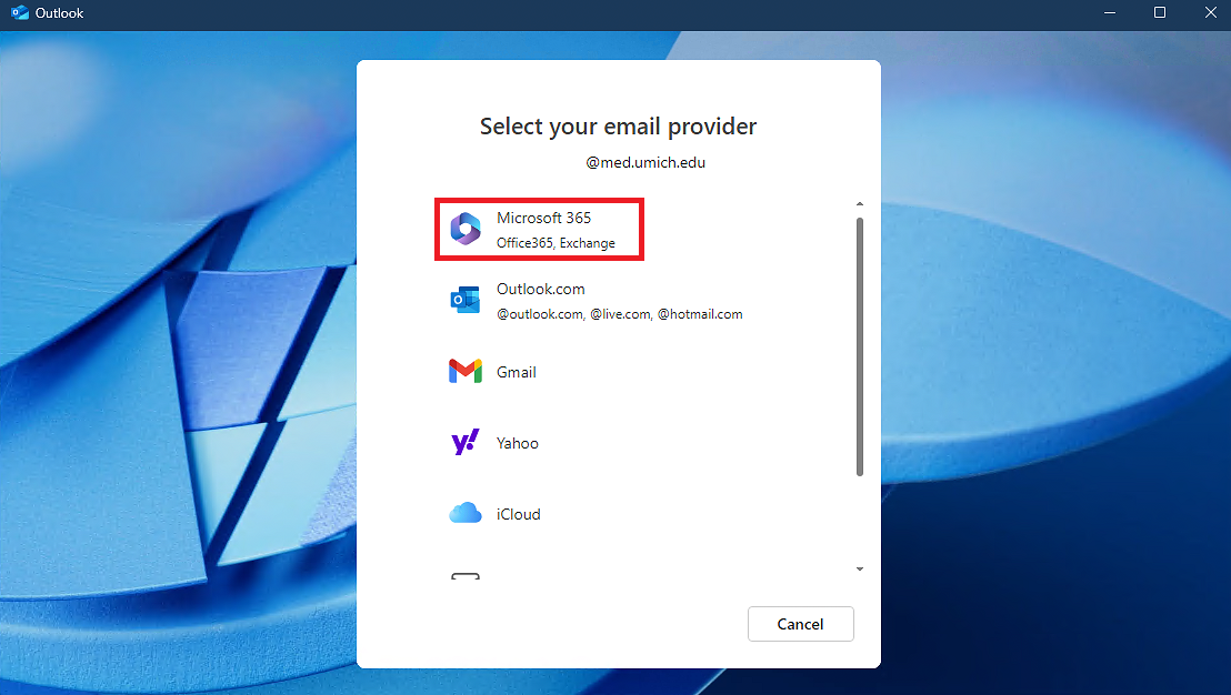 - Choose Microsoft 365.