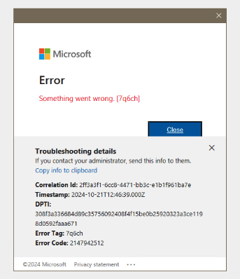 - Errors when using applications, such as Teams and Outlook as shown in the following screenshots.