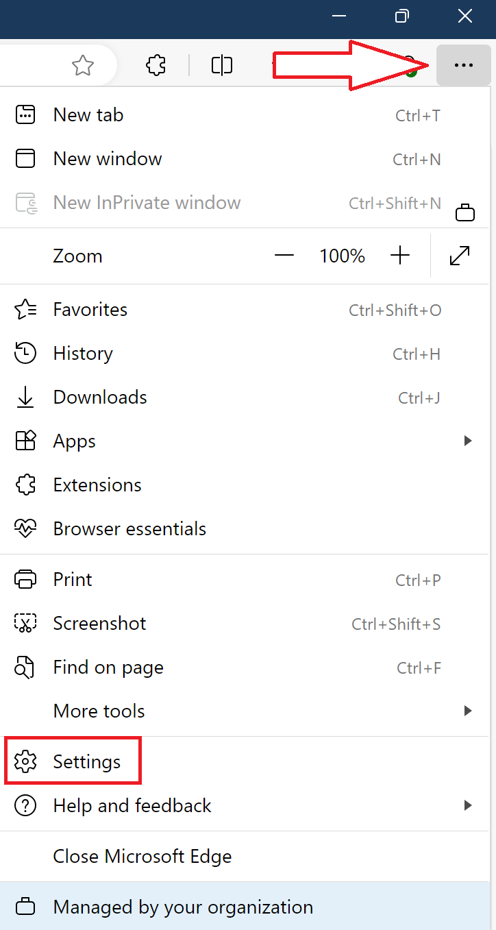 - Open Settings (example from Edge)