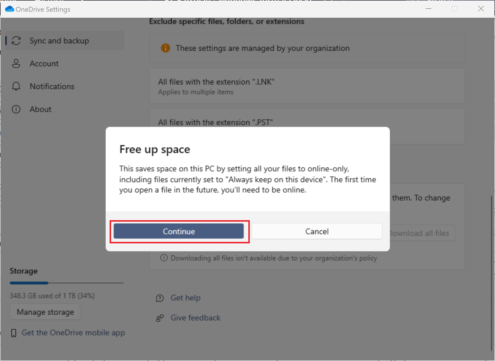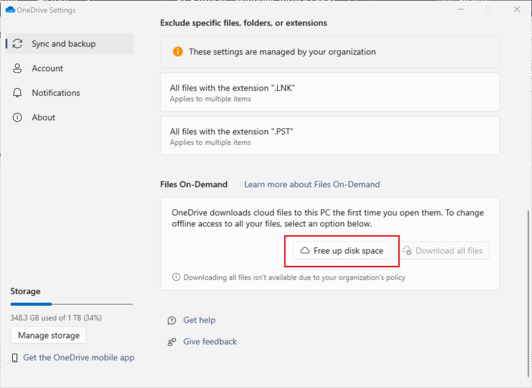 - Scroll down and click on Free up disk space.