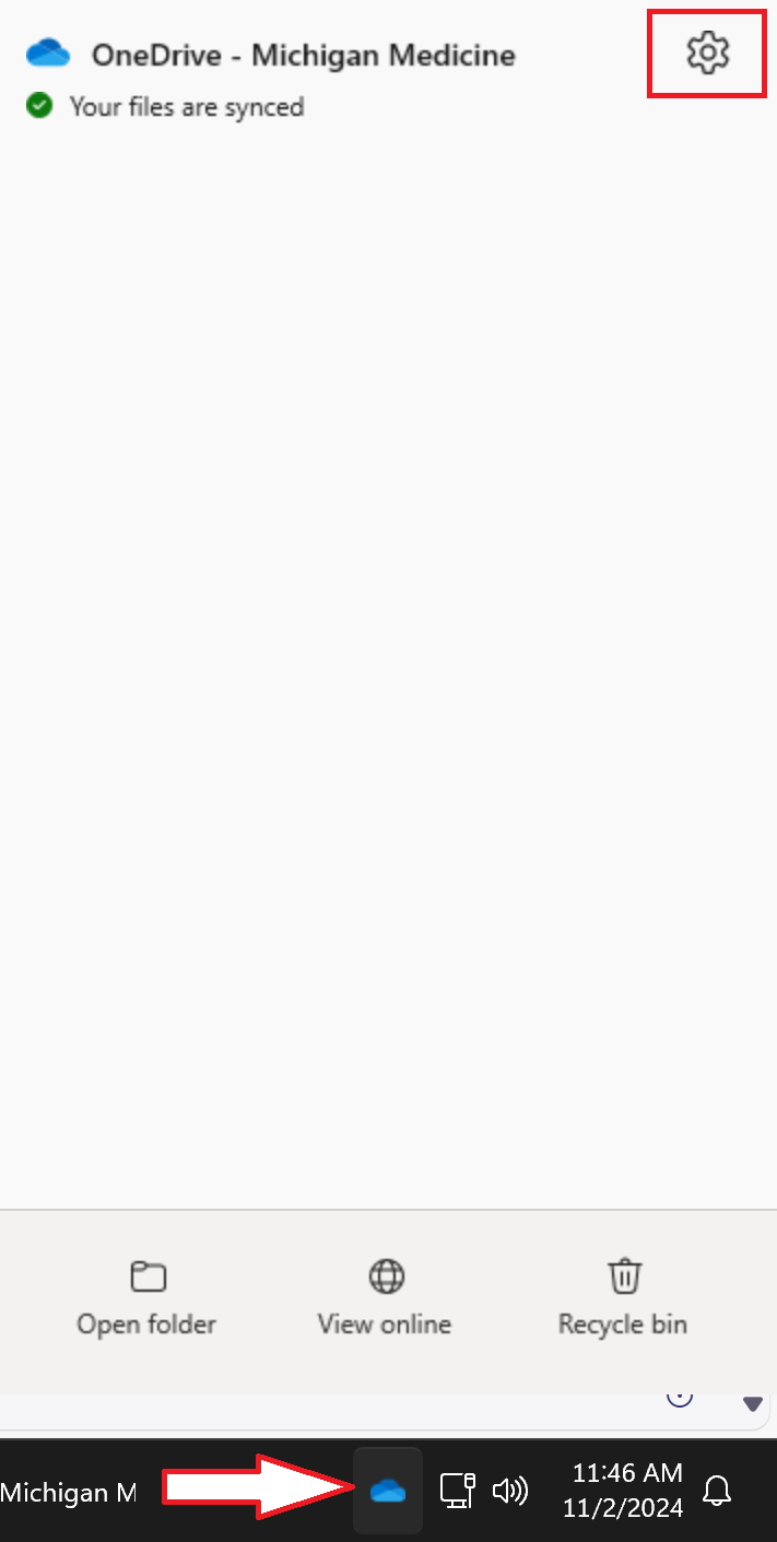 - Click on the blue cloud icon (OneDrive) near the clock on the taskbar.