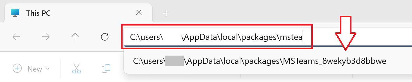 - In the address bar, type C:\users\<your uniqname>\AppData\local\Packages\MSTeams