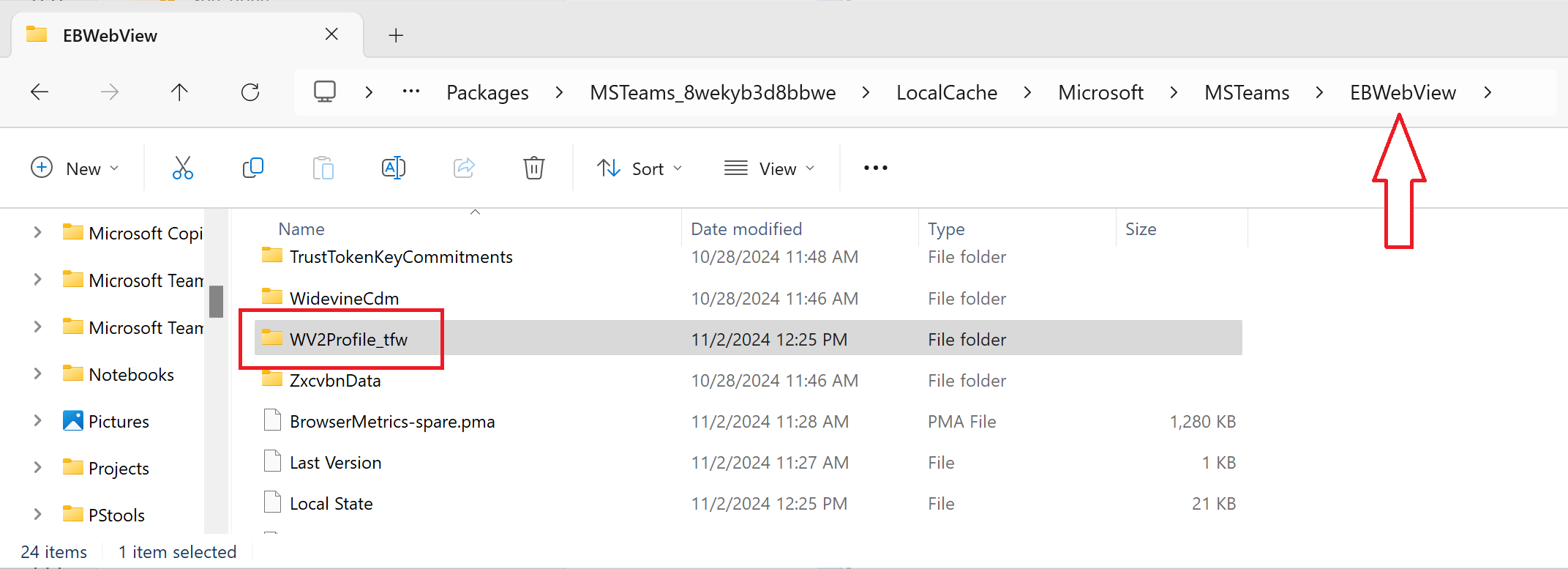 C:\users\<your uniqname>\AppData\local\Packages\MSTeams_8wekyb3d8bbwe - Traverse the directories LocalCache --> Microsoft --> MSTeams until you arrive at EBWebView as shown here: