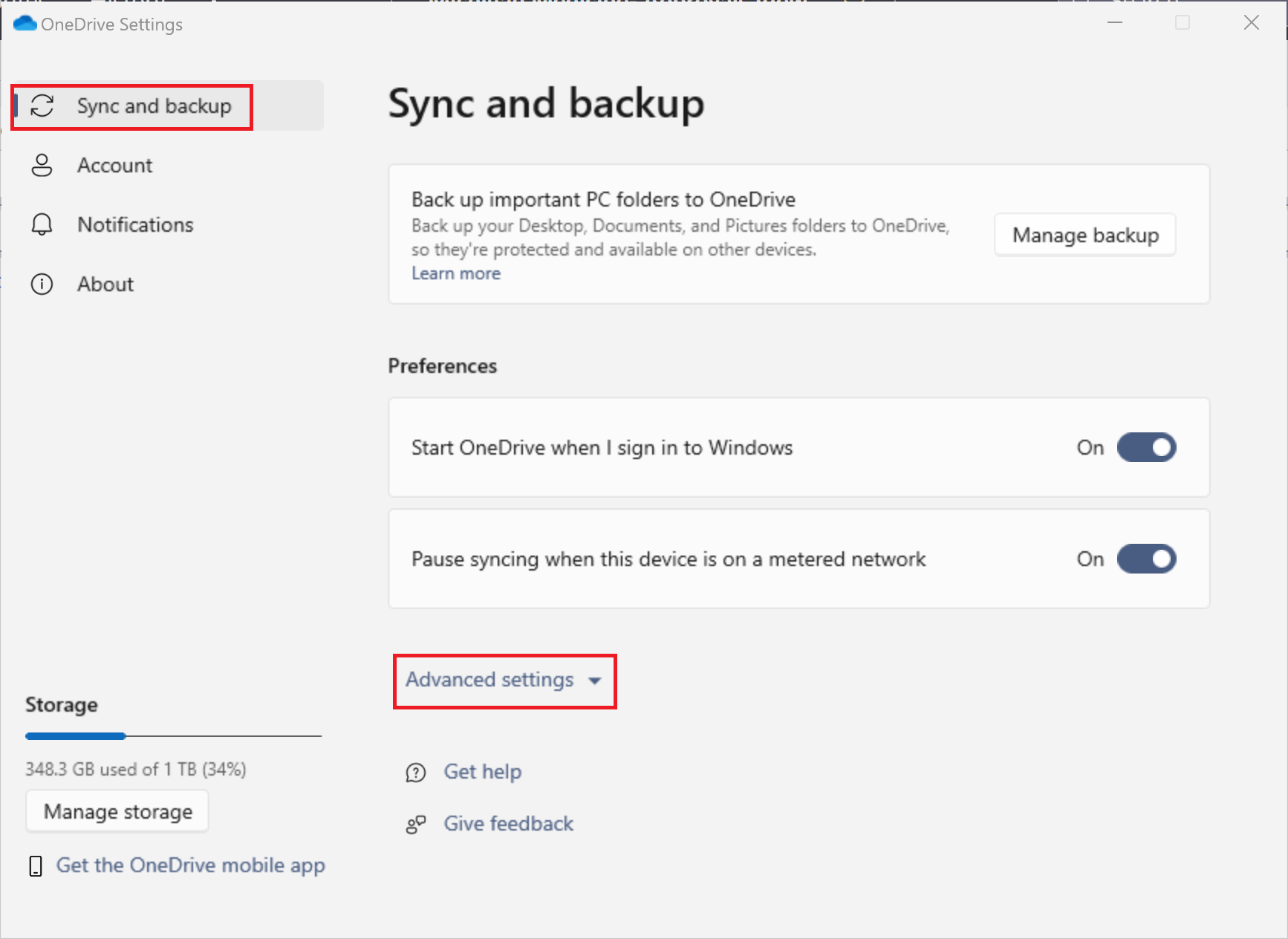 - Click on Sync and backup.